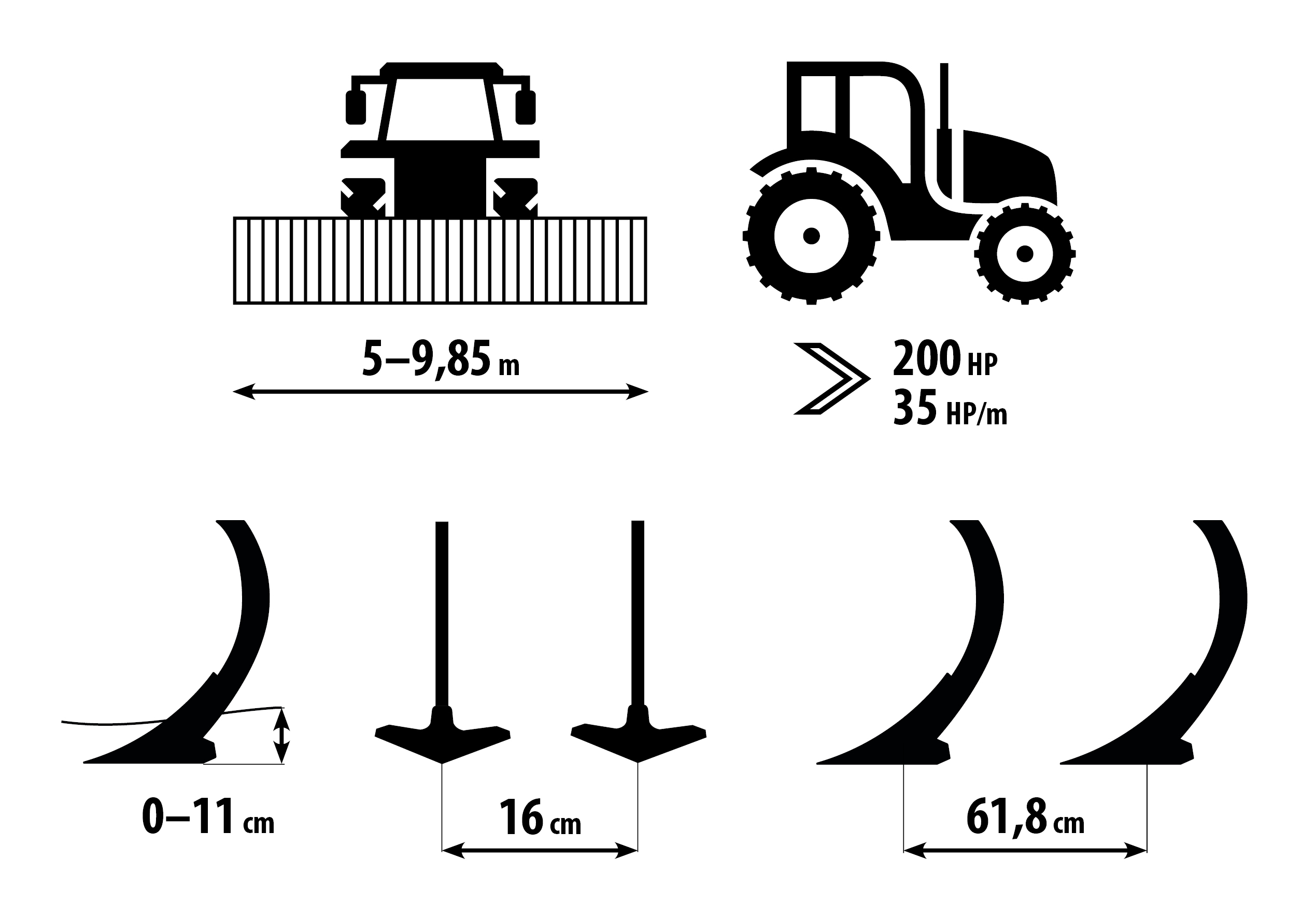 1 Препоръчената необходима мощност, действителната сила на разтягането може значително да се мени в зависимостa от дълбочината на обработката, почвените условия, наклона на терена, износването на работните органи и тяхната настройка.