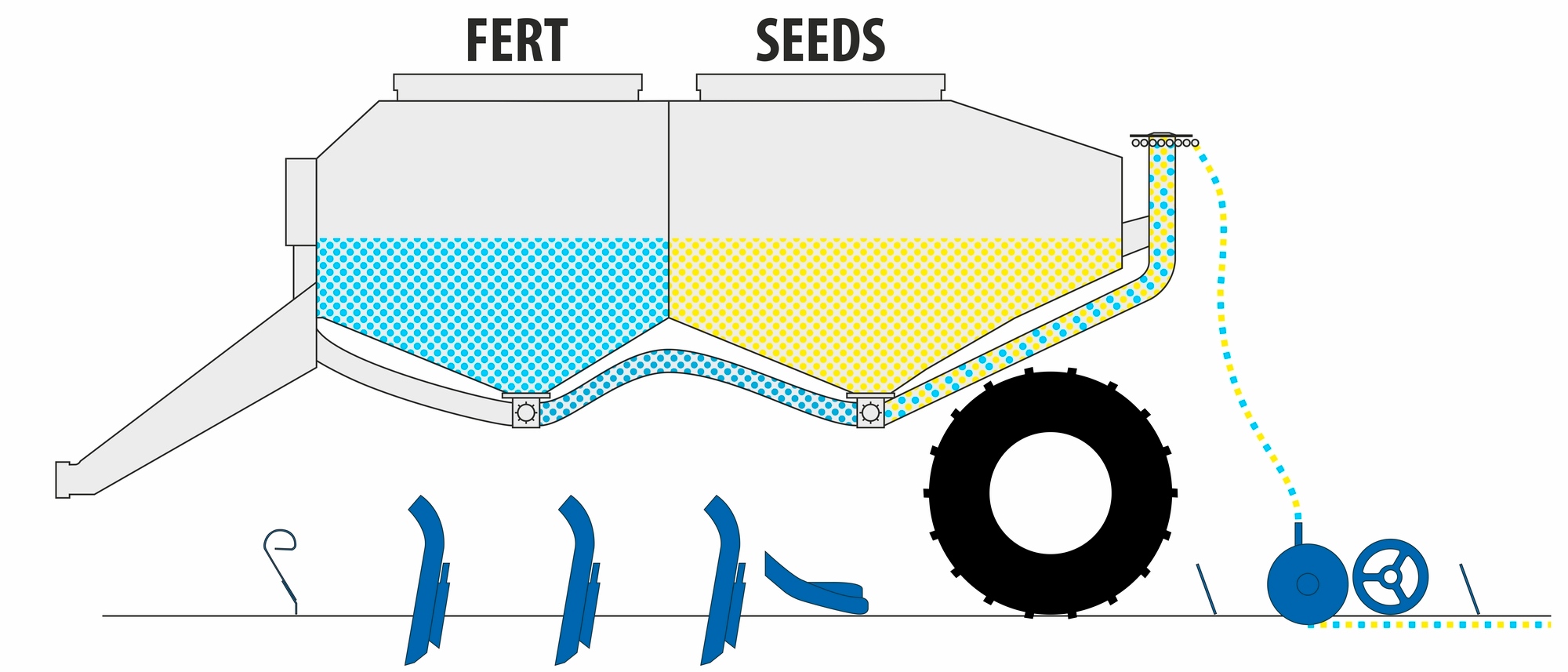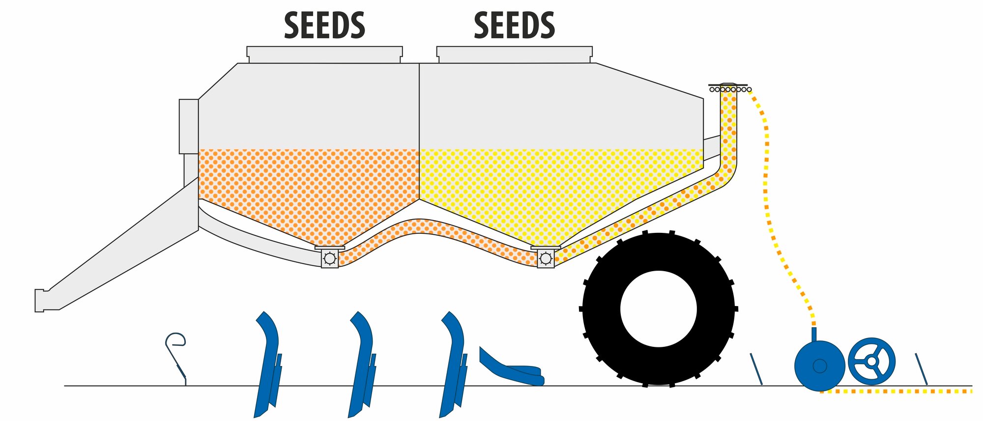 Dvoukomorový - setí s přihnojením popř. pro současné setí krycí plodiny. Tříkomorový (rozdělený odnímatelnou příčkou) – pro setí dvou plodin s přihnojením.