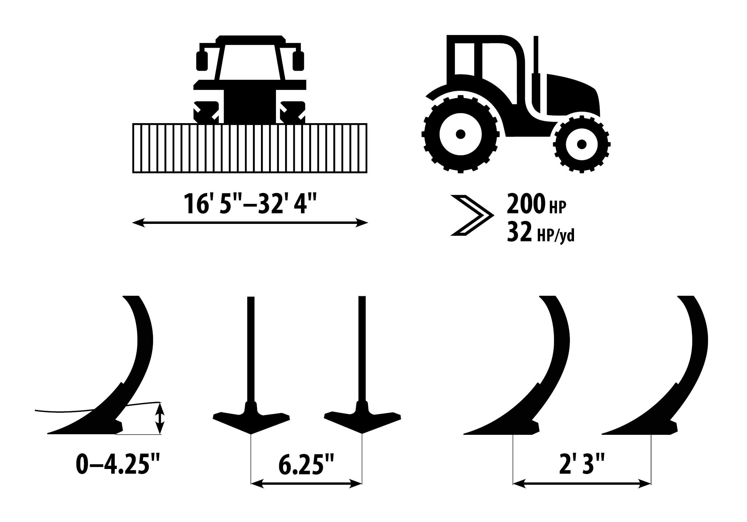 | Tine spacing | in. | 6.25" | 6.25" | 6.25" | 6.25" | 6.25" |
