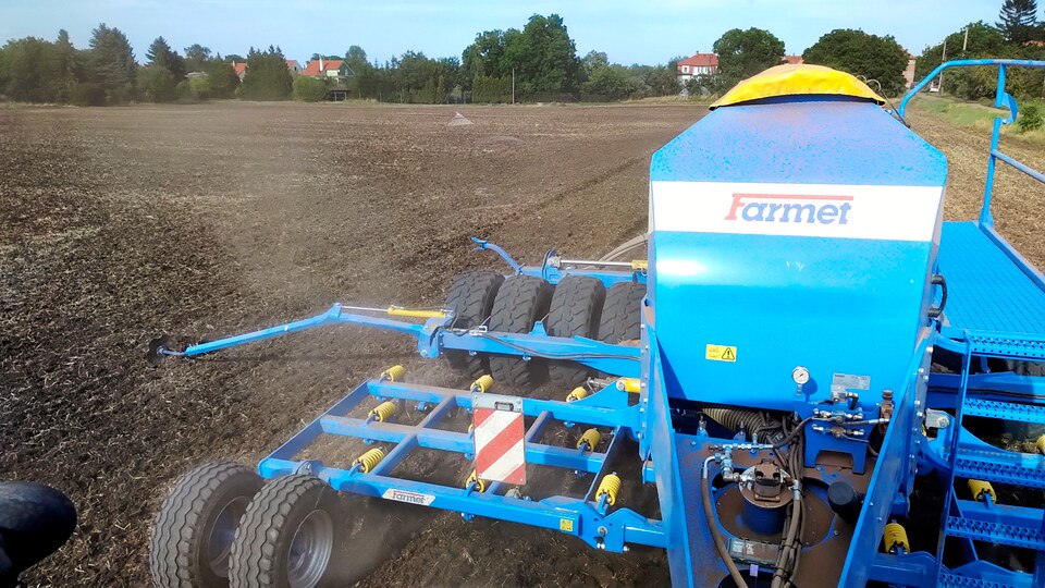 Growing rape the farm decided to use the strip till technology. The farm took the opportunity to try out our universal Falcon PRO seed drill, adapted for sowing rapeseed using strip-till technology in August, the last year. The customer aggregated the seed drill into own John Deere 8320 tractor and planted his entire rapeseed area with this set.