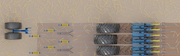 Sección de cinceles en 3 filas de tratamiento previo, distancia de 250 / 300 / 334 mm para la tecnología STRIP-TILL