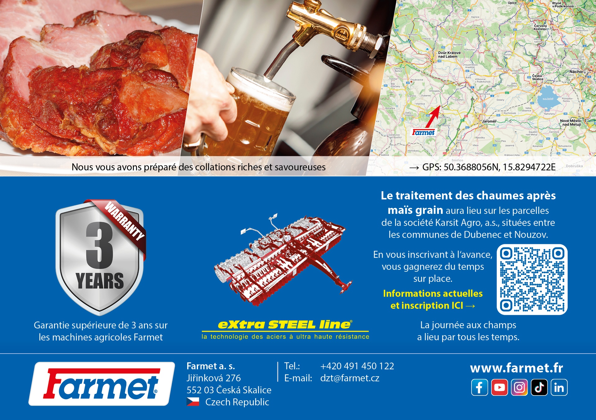 L'inscription en ligne a été possible jusqu'à 18. 11. 2025. Nous serions heureux de vous accueillir et de vous inscrire en person à la journée d'entreprise Farmet.