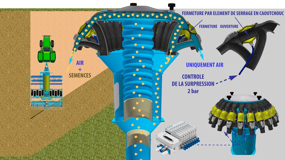 Cette année, Falcon 6 PRO a fait l’objet de nombreuses améliorations. La principale nouveauté est le système de contrôle automatique des sections (section control). En l’associant au contrôle automatisé à l’aide de la navigation GPS de l’entreprise allemande Müller Elektronik, il permet de commander jusqu‘à 64 sections. Il est donc possible de fermer indépendamment chaque organe de semis du semoir à rangs étroits avec une largeur de travail pouvant atteindre 9 mètres. Et ce de façon rapide et efficace pour la continuité optimale des différents roulements sur des terrains accidentés et dans des rangs longs. La machine est également équipée de nouveaux doseurs avec rouleaux échangeables. Les organes de distribution à rouleaux sont métalliques, inoxydables et présentent une meilleure précision de semis de petits grains tels que le pavot.