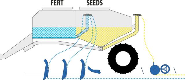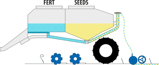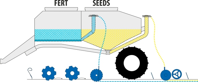 En cas des semoirs à disques Falcon, avec un système de dosage de surpression, il est possible d'appliquer de l'engrais directement aux graines et de le déposer dans le sol. Ce système est avantageux pour l'application des engrais combinés de start. Les doses efficaces de ces engrais sont de 25 à 100 kg/ha. Ces doses assurent un start rapide de la croissance des plantes, leurs meilleure compétitivité contre les mauvaises herbes et leurs plus grande résistance aux maladies et ravageurs au début de la végétation. Ce système de fertilisation doit être combiné avec des autres engrais conventionnels pour assurer une nutrition suffisante des plantes lors de toute la végétation. Sinon, le rendement des grains peut être réduit par rapport à d'autres procédés de fertilisation.