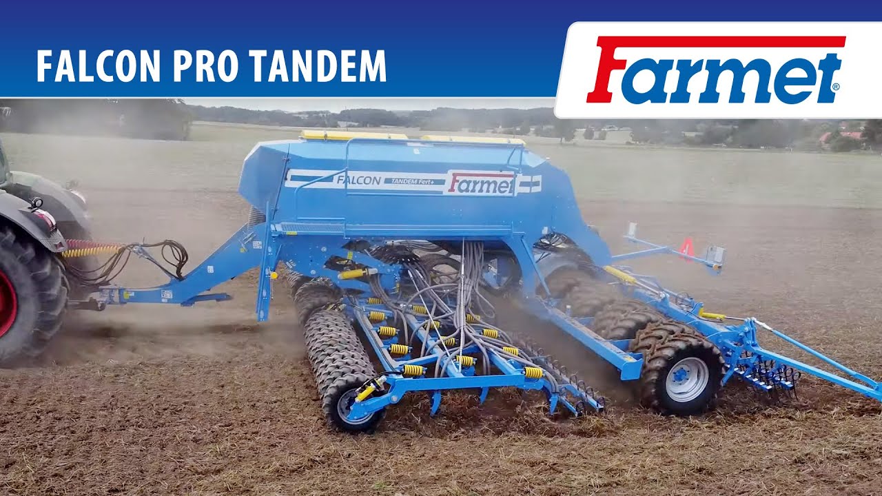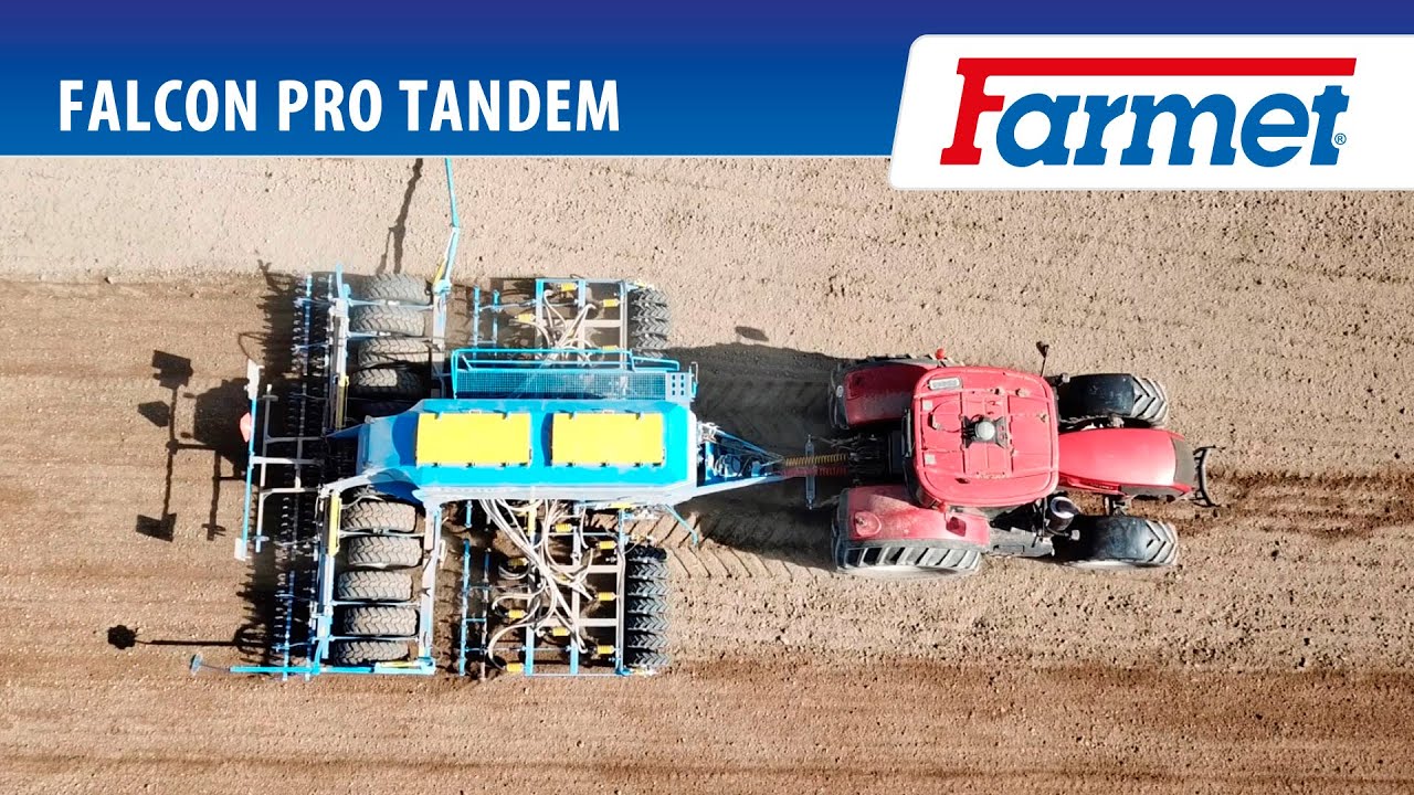 Le semoir Falcon PRO Tandem utilise la base modulaire du Falcon PRO équipé de la section avant avec un rouleau plombeur et trois rangées de dents semeuses spécifiques. Une herse niveleuse est installée derrière les dents et assure un excellent nivellement de la surface du sol en même temps que la dispersion uniforme des résidus végétaux.L’essieu pneumatique arrière, équipé de pneus grand diamètre en basse pression, assure une très faible pression sur le sol même avec les trémies remplies. Les pneus robustes sont très résistants aux chocs et permettent le transport à grande vitesse et sur de longues distances de la machine sur les routes de mauvaise qualité.