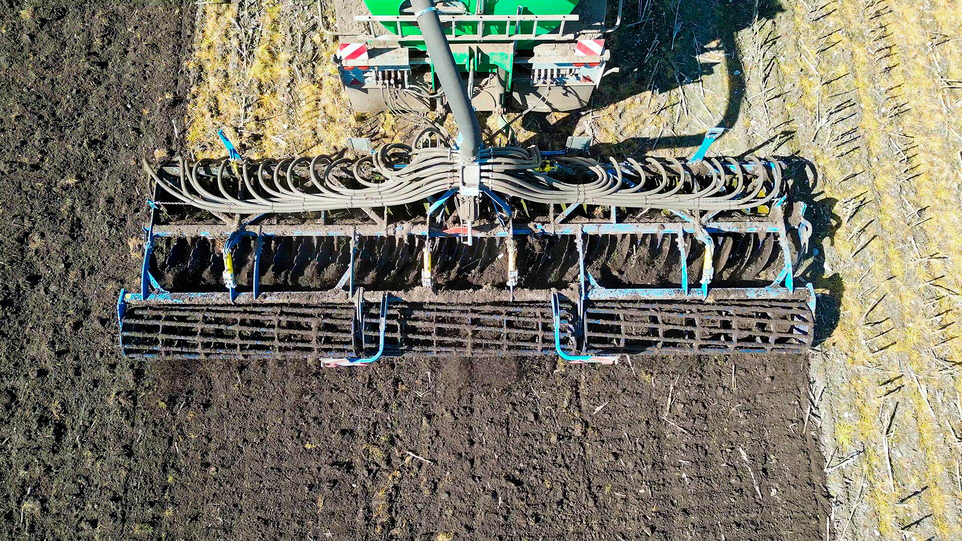 Softer NS + SynCult is a complete set consisting of the disc cultivator, a frame, a precise distribution head, hose outlets and corresponding end pieces. The number of outlets and the mounting of the distribution head is defined by the width of the disc cultivator. The distribution head meters out homogenous quantity of manure or digestate into the individual outlets and hoses that are distributed in a defined order, which ensures a trouble-free application of the liquid fertiliser. The outlet of the liquid in front of the disc allows immediate and emission-free incorporation. This incorporation method reduces the number of passes, saves time and money and meets the requirements for incorporating manure within 4 hours.