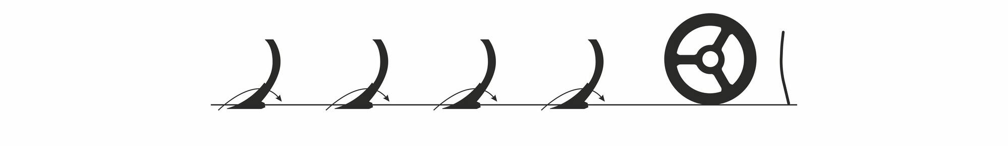 | 1 | Įdirbimo zona. Įdirbimo gylis iki 11 cm. Optimizuotos geometrijos keturiomis eilėmis išdėstyti įdirbimo peiliai užtikrina seklų įdirbimą iki nustatyto gylio. |