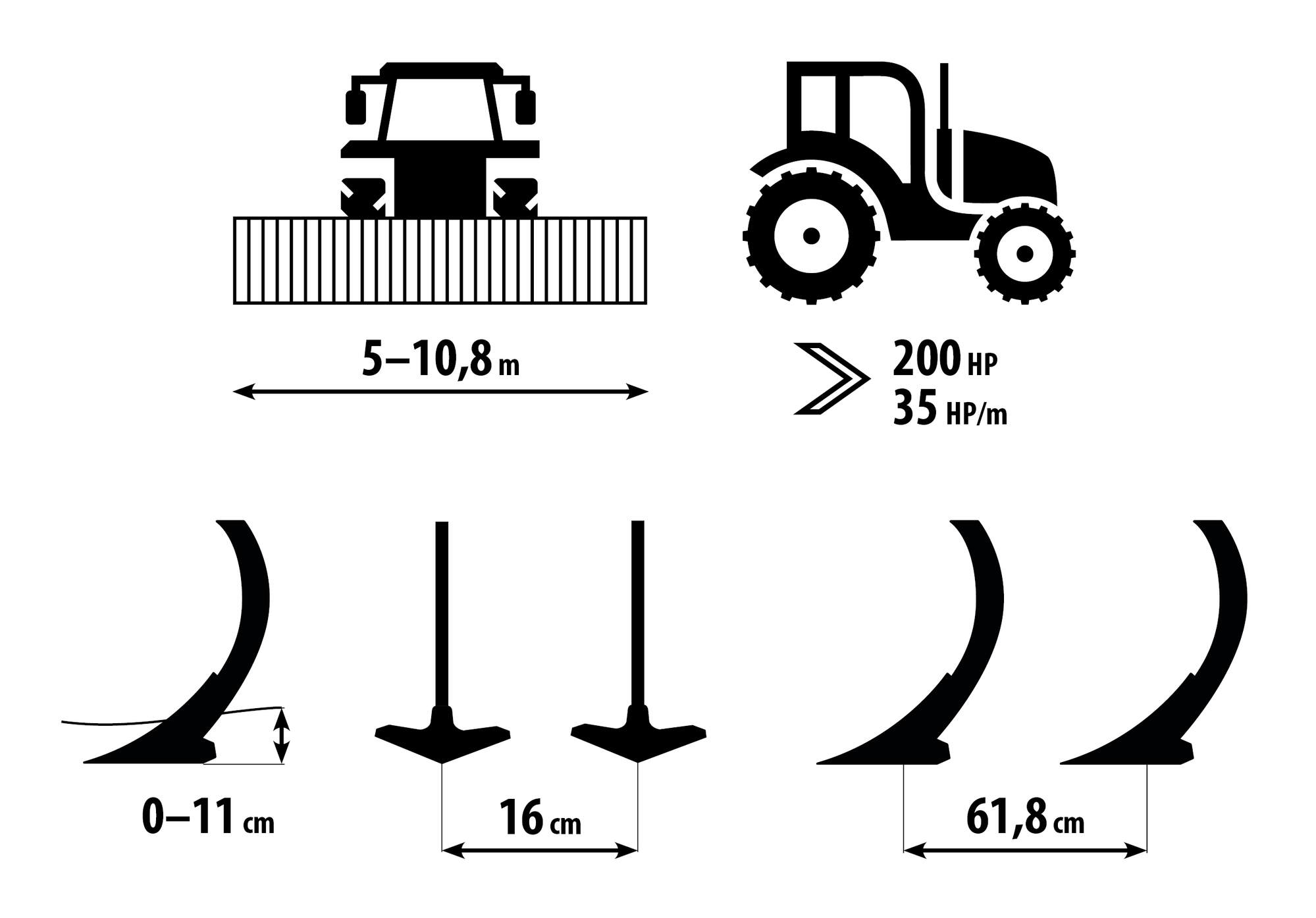 | Working speed | km/h | 8–12 | 8–12 | 8–12 | 8–12 | 8–12 |