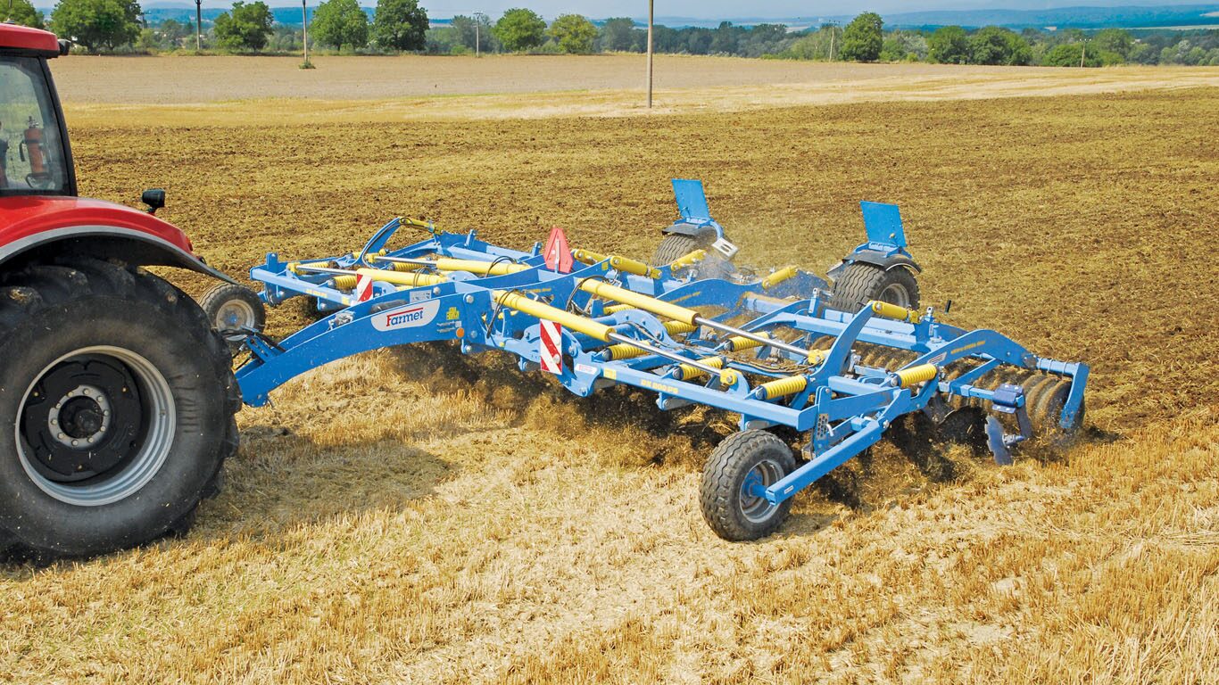 | 1 | Loosening zone. The loosening depth has a wide range of 6–30 cm. Full-area undercut wings can be used for loosening from 6 to 20 cm. The two-row optimized cultivation chisels ensure very good loosening and intensive mixing of the soil with the plant residues with very low tensile resistance. |