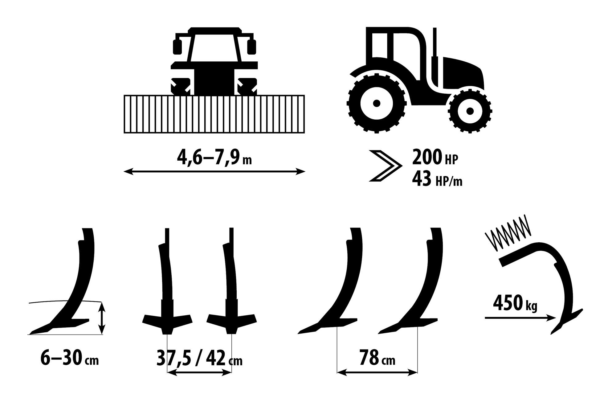 1 Recommended towing vehicle, the actual pulling force may significantly change according to the processing depth, soil conditions, inclination of land, wear of working members and their adjustment.