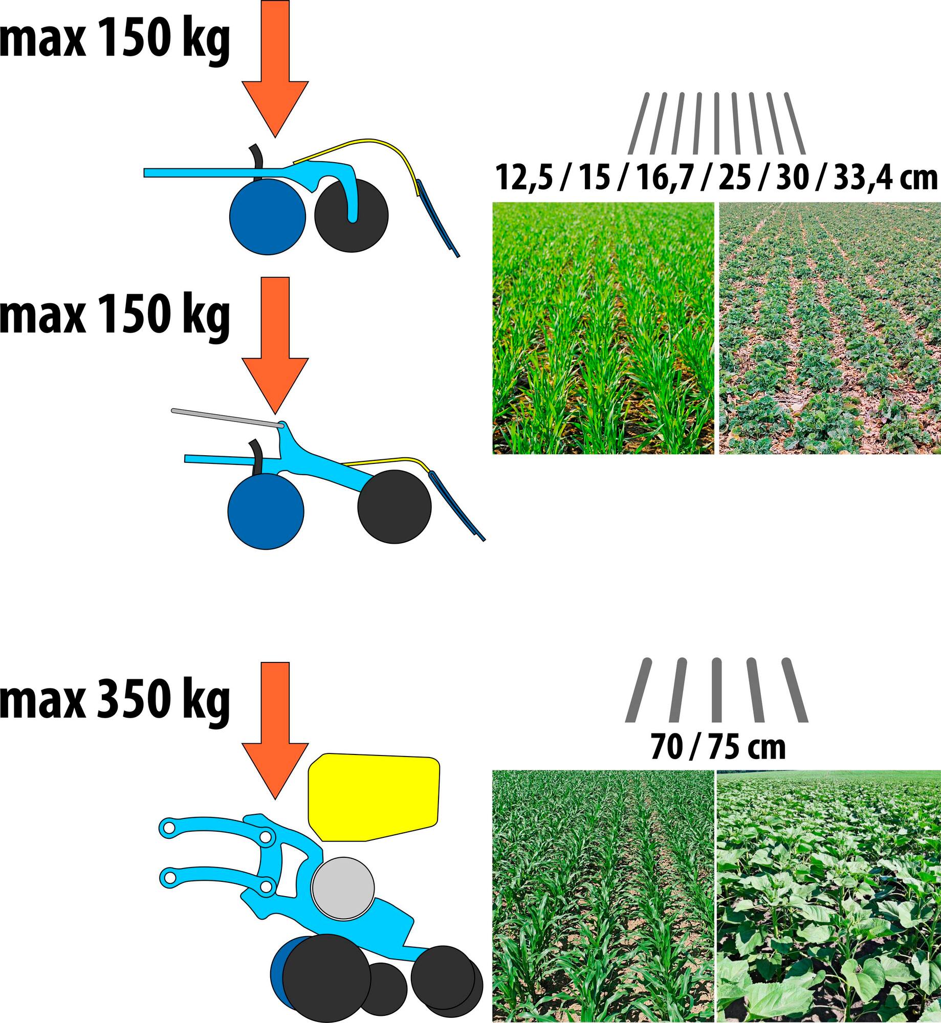 Точный посев культур с широким междурядьем, рабочая ширина 6 / 8 рядов при расстоянии 70 / 75 см