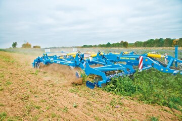 Dlátový kypřič TERRIX DUAL má pracovní nástroje v tandemovém uspořádáním. K prokypření půdy dochází postupně, což výrazně zlepšuje kvalitu kypření a snižuje tahový odpor stroje. Rovnací disky jsou umístěné za druhou a čtvrtou řadou dlát. Zadní válce zajišťují zpětné utužení půdy a rozdrobení hrud.